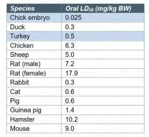 Table 1 – Aflatoxin B1 oral LD50 of various animals’ species