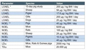 The same stands for the tolerance of zearalenone when we are talking about gilts compared with the young piglets. The tolerance to zearalenone increases with the age, maturity and weight of the pigs as we can see in Table 2.